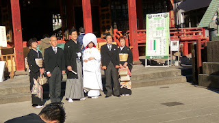 আমি গৈ পোৱাৰ আগতেই বিভিন্ন দেশ-বিদেশৰ যথেষ্ট দৰ্শনাৰ্থীৰে ভৰি আছে ৷ সোমায়েই চকুত পৰিল মন্দিৰ চৌহদৰ মুকলি ঠাইত জাপানৰ শিন্টো পৰম্পৰাগত নিয়মেৰে বিয়া এখন চলি আছে ৷ সেয়ে প্ৰথমতেই জাপানী বিয়াৰ নীতি-নিয়ম চোৱাৰ হেঁপাহেৰে তালৈ অগ্ৰসৰ হ’লো ৷ জাপানত যদিও পশ্চিমীয়া সংস্কৃতিৰ প্ৰভাৱ বেছি বিয়াখনত তেনে প্ৰভাৱ দেখা নাপালোঁ ৷ কেইজনমান লোকেৰে অনুষ্ঠিত বিয়াখনত বিশেষ জাকজমকতা বা বহু লোকৰ সমাগম নাই ৷ আনকি বহাৰ বাবেও কোনো আয়োজন নাই ৷ দৰা-কইনাৰ লগতে বিয়াৰ বাবে গোট খোৱা লোক সকলো থিয় হৈয়েই বিয়াৰ কাম সম্পন কৰিলে ৷ কইনাগৰাকী শুদ্ধ বগা কিমোনো আৰু মুৰত বিশেষ আৰ্হিত তৈয়াৰ কৰা টুপী আৰু দৰাজনে পুৰুষে পিন্ধা কিমোনো পৰিধান কৰিছে যদিও তলৰ অংশ কলা আৰু বগাৰ মিশ্ৰিত ৰঙৰ কাপোৰ আৰু ওপৰৰ অংশ সম্পূৰ্ণ কলা ৰঙৰ ৷ কইনাই বিয়াৰ সময়ত পিন্ধা কাপোৰসাজক জাপানত উচিকাকে ( Uchikake) বুলি কোৱা হয় ৷ দৰা-কইনা দুয়ো থিয় হৈ থাকোতেই পুৰোহিত জনে ধৰ্ম প্ৰথা অনুসৰি দৰা-কইনা দুয়োজনকে শুদ্ধি কৰি ভগৱানৰ ওচৰত তেওঁলোকৰ বিয়াৰ ঘোষনা কৰে আৰু আশীৰ্বাদ বিচাৰে ৷ তাৰ পিছত দৰা-কইনাই তিনিটা কাপত থকা পানীয় এবিধ প্ৰতিজনেই প্ৰতিটো কাপৰ পৰা এঢোককৈ তিনিবাৰ খায় ৷ এই প্ৰথাক “Sansankudo’’ বুলি কোৱা হয় যাৰ অৰ্থ “তিনিকাপ তিনিবাৰ”৷ বিয়াৰ কাৰ্য ইমানেই তাৰ পিছত পৰিয়ালৰ লোকসকলে একেলগে ফটো উঠাৰ অন্তত মানুহে টানি নিব পৰা ৰিক্সা সদৃশ (চলাব নোৱাৰি) এখনত উঠাই লৈ গ’ল ৷ সেই সময়ত আমাৰ ইয়াত ঘৰৰ লোকতো বাদেই পৰিয়ালৰ আন সদস্যসকলৰ বিয়া বুলি হোৱা আয়োজনৰ ছবিখন চকুৰ আগত ভাঁহি উঠিল ৷ আন এটা কথা মন কৰিলো উপস্থিত প্ৰতিজন পুৰুষে কলা ৰঙৰ চুট পিন্ধিছে ৷